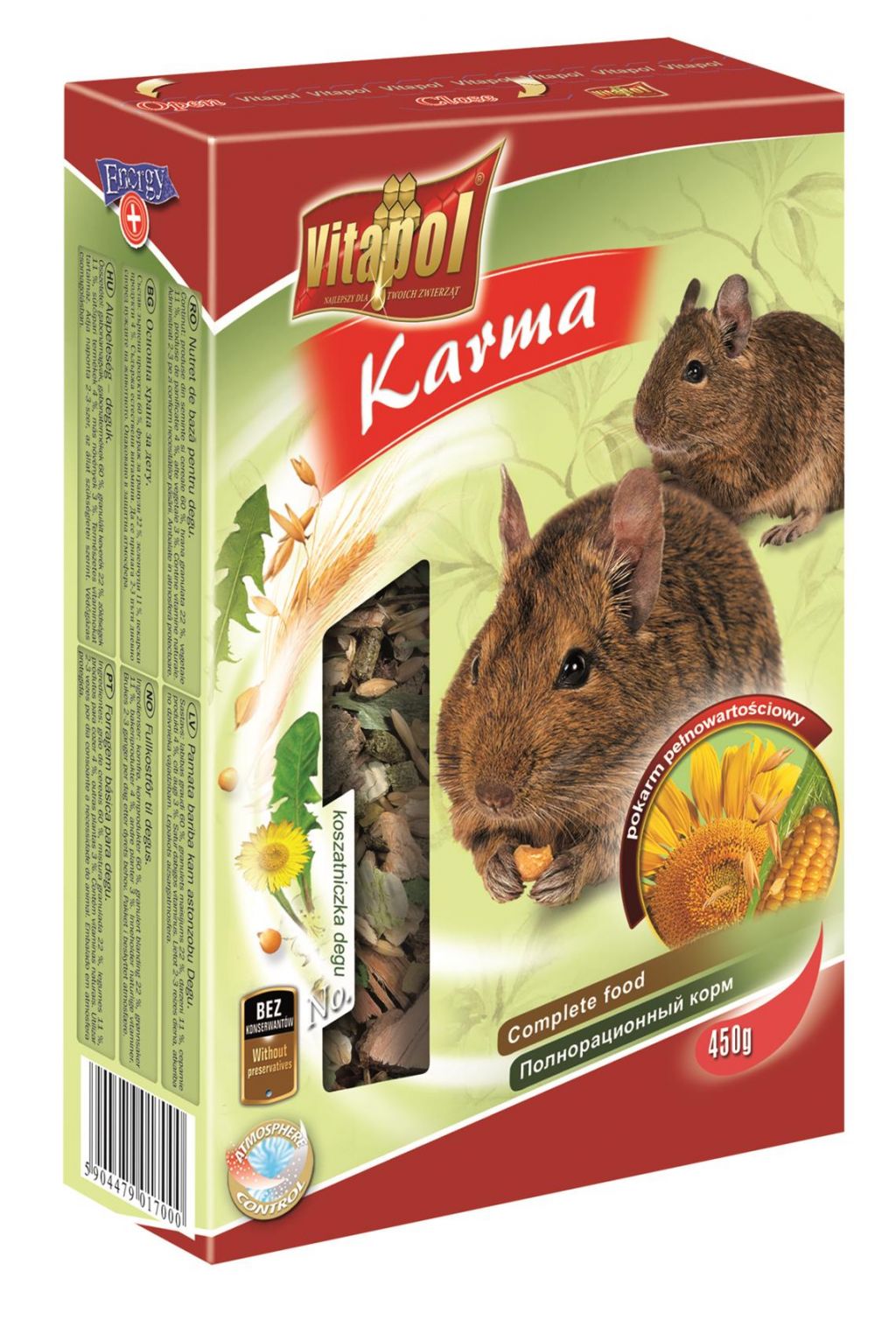 Standard feed mixtures can be diluted with dried vegetable cutting, bread or home-made rusks. Feeding with beans is allowed. It is worth considering that for the degu are better suited not domestic, but foreign dry food.