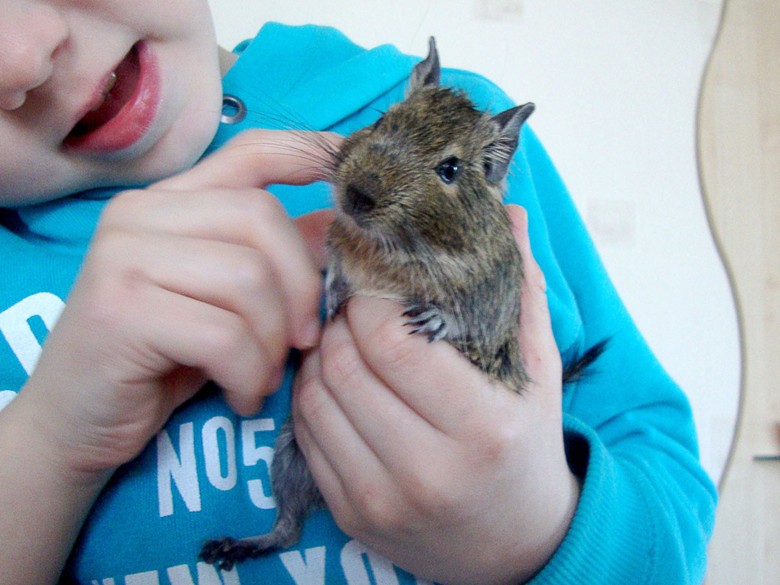 Bathing Chilean squirrel is not required. The animal itself during sand bathing will clean the wool. Degu is friendly and appreciates the attention of people. The animal will not object to attempts to seat yourself in your arms. When he is stroked, something like a purr is heard.