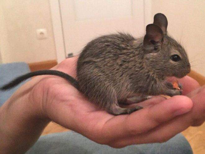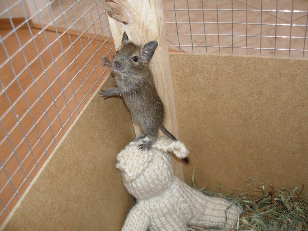 Chilean squirrels have a strong sense of smell. Of course, the search dogs are far away for them, but the smells of the owners on clothes, underwear or other textiles will be detected accurately. You can be wary of holes. Another nuance: moving around the house, the degu can be almost anywhere. We must constantly monitor, so as not to step on it, do not squeeze the door or cause damage somehow.