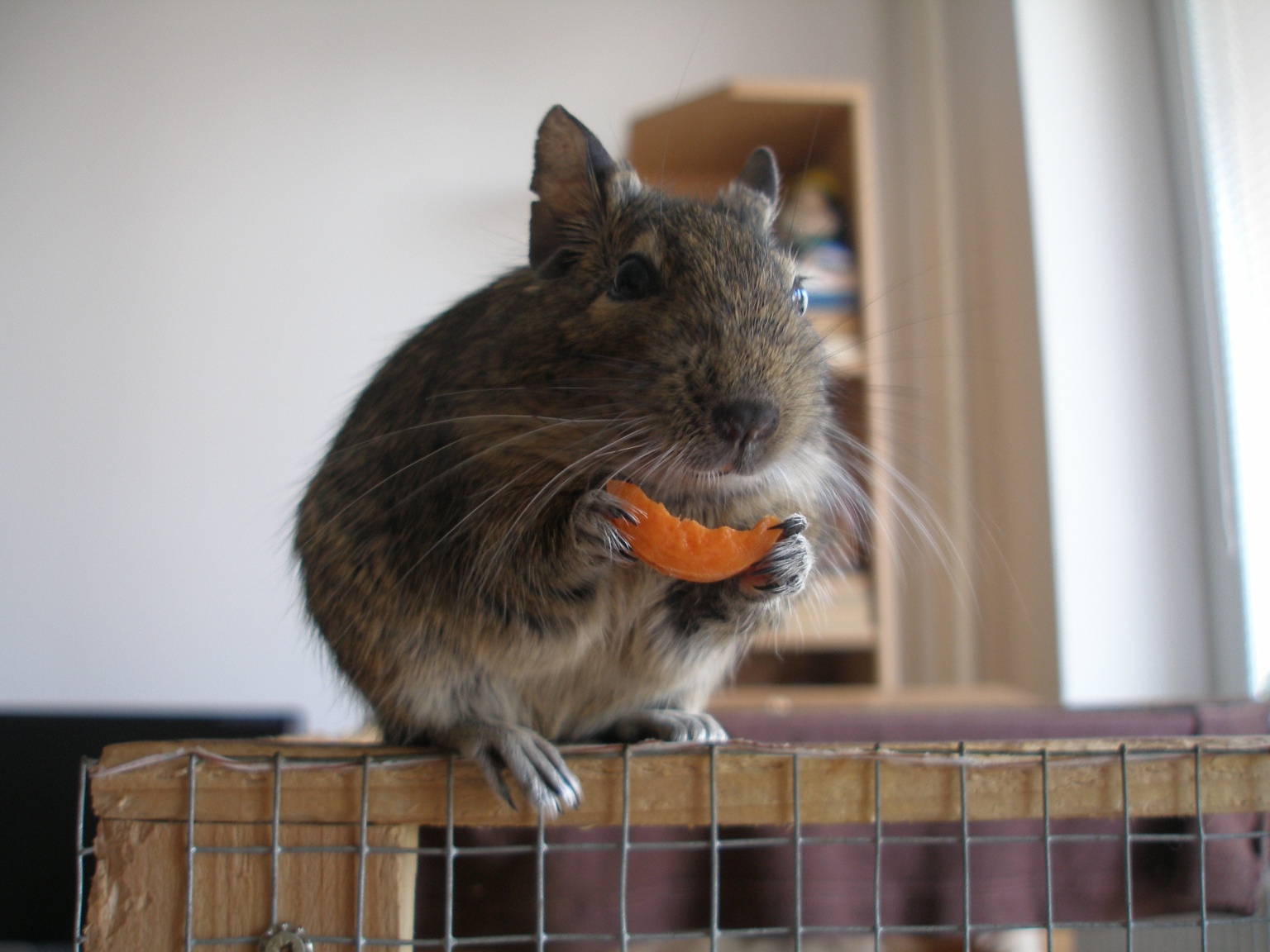 Consideration should be given to the great mobility and curiosity of the Chilean squirrels. They very often gnaw electrical wires, mobile equipment and other electronic equipment. Animals can do harm to books, newspapers with magazines, money, documents, pictures ... All this must be carefully protected. Uncontrolled movement of degu around the house is unacceptable!