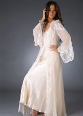 The fair sex just love silk clothing, especially when it comes to underwear or wearable clothing. White silk dressing gown looks luxurious and unforgettable. Silk is light and light. It is very pleasant to the touch, and is able to acquire body temperature. This bathrobe will be a great solution for the hot season.