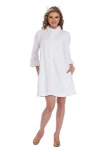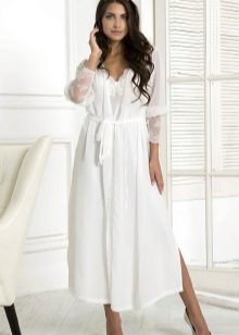 Beautiful white bathrobes can be decorated with a variety of decorative elements. You can look great even at home. Designers are increasingly offering loose silhouettes without stiff clasps. In the trend of white robes with a smell or zipper. Looks charming model with a lowered shoulder line.