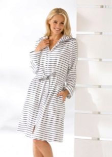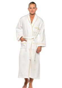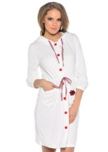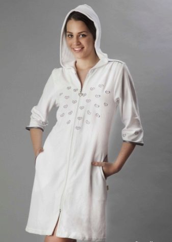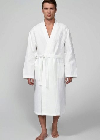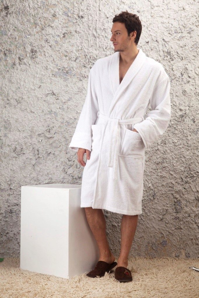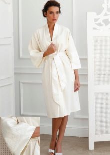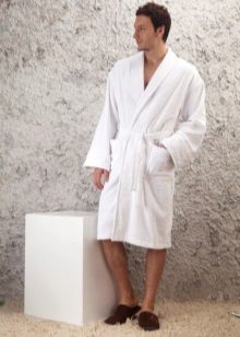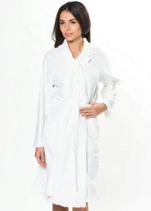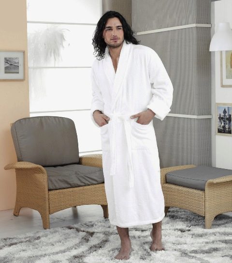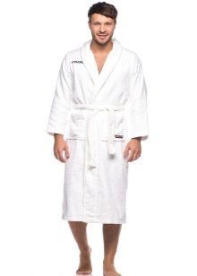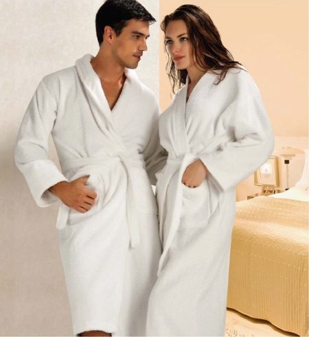 The bathrobe is often purchased just for bathing purposes, because the mahr perfectly absorbs moisture, is hypoallergenic and allows the body to breathe. White terry bathrobe is versatile and attracts the attention of an attractive look.