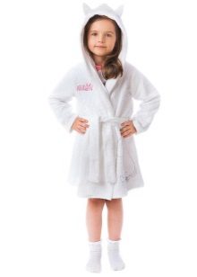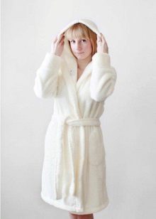 White bathrobes with a hood, especially in winter, are in great demand. This can be a product of a long-hair mahra. The hood can act as a decor. Today, there are often white bathrobes with ears. They look funny and cute.