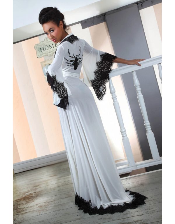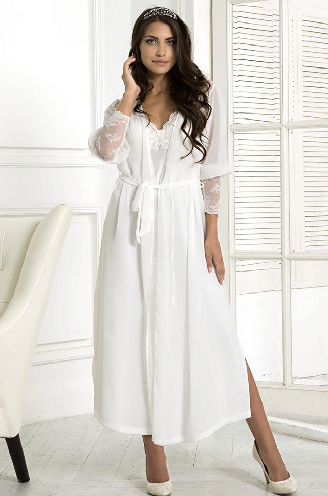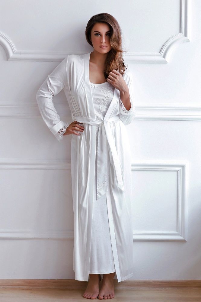 Although viscose is an artificial fiber, it possesses many properties of natural fabrics. The main feature is softness and tenderness.Viscose has a lot in common with cotton, namely hygiene, hygroscopicity and breathability. White viscose gown can be worn both in winter and in summer. It will help emphasize the beauty and feminine silhouette.