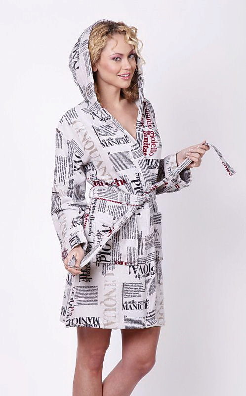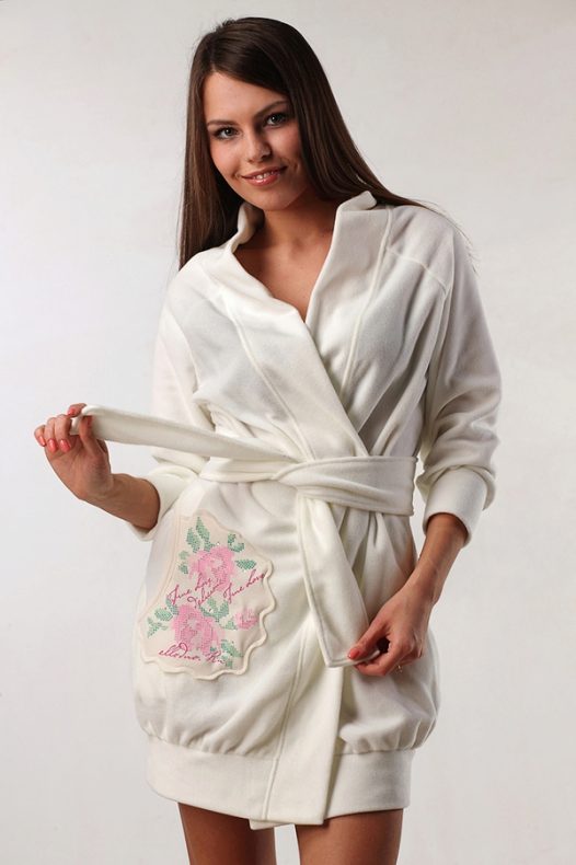 Bathrobes with original prints deserve special attention. Not everyone likes white color, but a snow-white bathrobe with an interesting pattern will surely find many fans. Today in trend are models with butterflies, flowers, animals or cartoon characters.