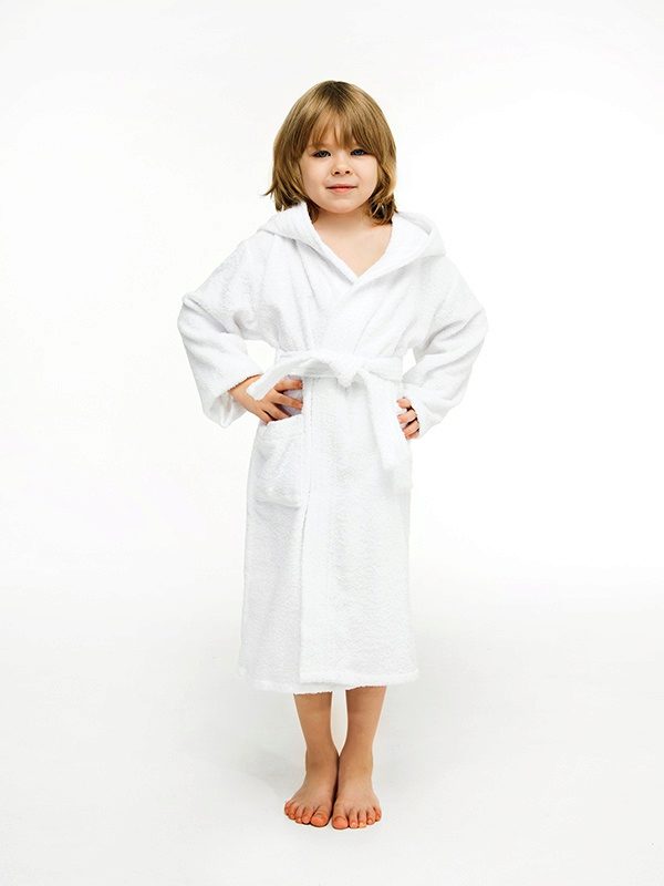 Manufacturers offer stylish white coat models not only for women or men, but also for children. These clothes will be indispensable after a bath in the cold season. A great choice is a terry robe. The child will surely enjoy a bathrobe with a funny hood in the form of little animals or with an original pattern.
