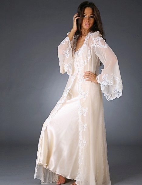 - The white dressing gown can be sewn from natural or artificial fabrics. Their choice depends on aesthetic and tactile preferences. Among natural materials white bathrobes made of silk or cotton are in great demand. Among the variety of synthetic fabrics can be preferred product from satin, acrylic or viscose.