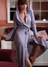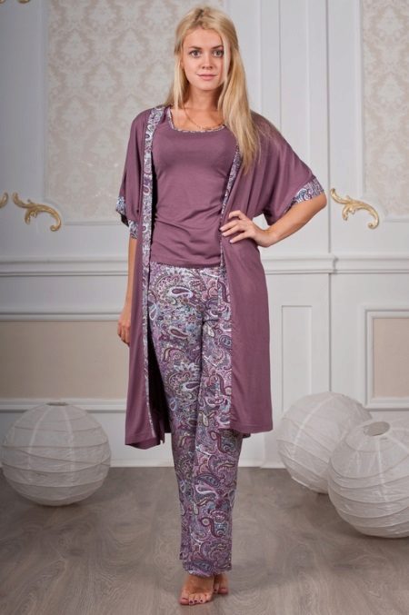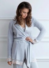 An option for women who like a bathrobe, but do not like the feeling of bare legs, no matter how long the bathrobe is. Short or long trousers with a short robe or a medium-length robe - this is already a complete home ensemble, still comfortable, but at the same time creating an interesting and not the easiest way.