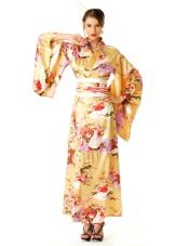 Model robe t-shaped silhouette, the style of which came to us from the still actual national Japanese costume. The length of the kimono robe varies depending on the desire, has no clasp, is fixed by an obi belt, imitating the original element of the Japanese national costume, or just a wide long belt.