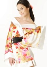 A characteristic detail of such a dressing-gown style is a wide sleeve in which the hole for the hand is always located higher than the height of the sleeve itself, creating a very beautiful flying silhouette of the arm-wing. As a rule, it is sewn from expensive natural fabrics of spectacular colors or patterns, allowing you to combine elegance and extravagance in one image.
