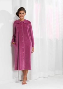 One of the most stylish and at the same time convenient options for this type of home wear, the cut of which imitates a men's shirt. It can be fitted or oversized, with a collar or without a collar, with a polo or full-length clasp, with a long or short sleeve, a variety of colors and prints depending on the taste and ideas of the hostess about comfort. Sometimes a dressing-gown shirt is so good that it is suitable for wearing outside the home.