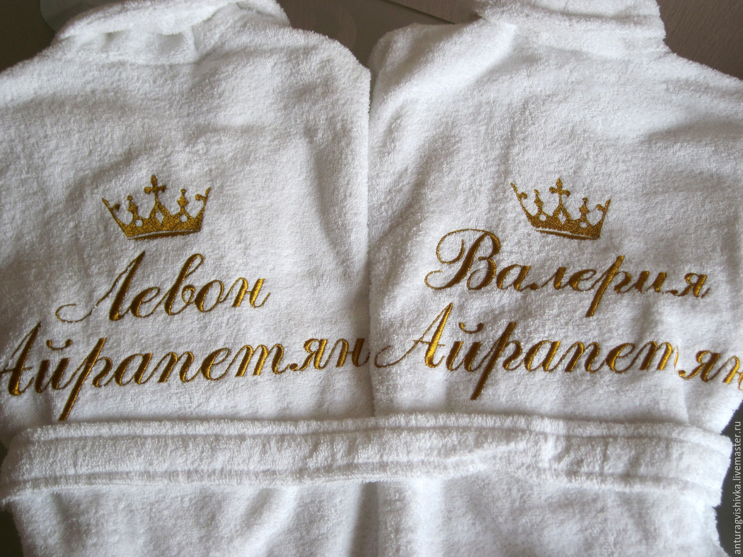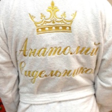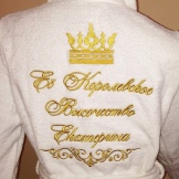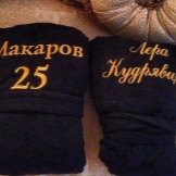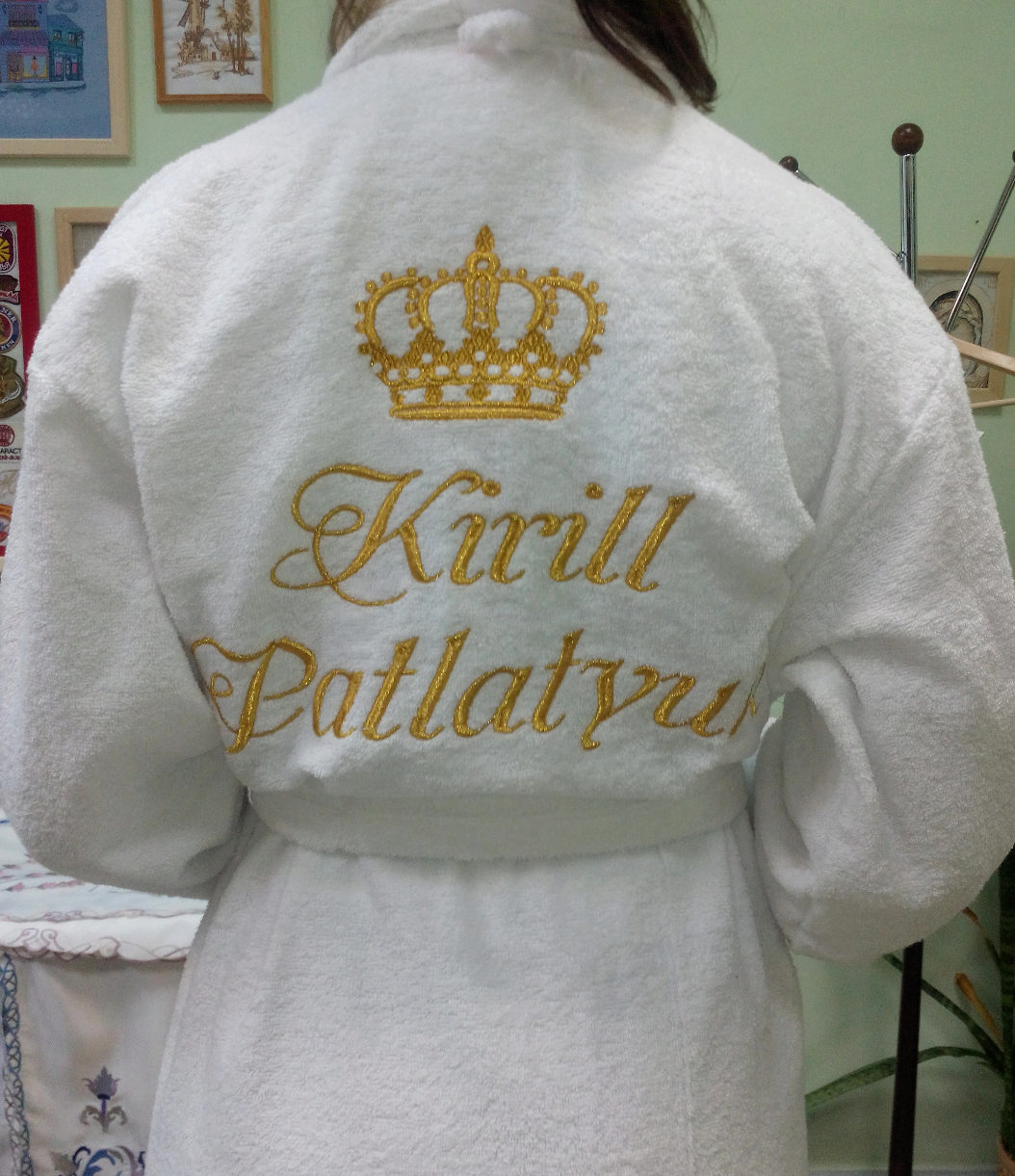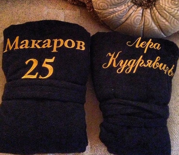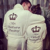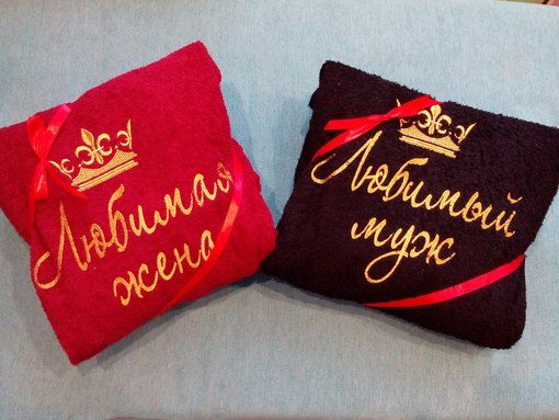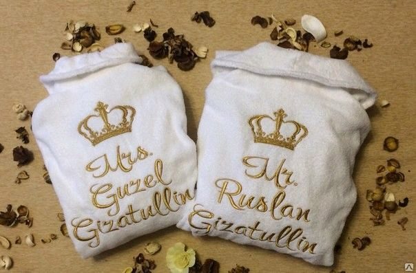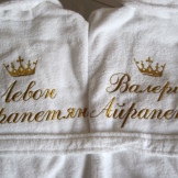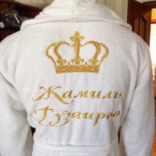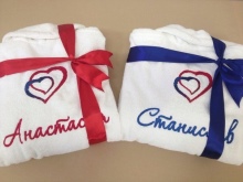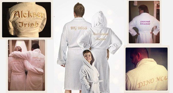 Native dressing gown will be a very original idea for a gift for a birthday, New Year, wedding anniversary or March 8 or February 23. For a specific date, it is necessary to consider the appropriate design of the embroidery and the text of the inscription. For example, as a gift to the couple should consider the option with embroidered rings, date of marriage and the names of the husband and wife. It is logical to accompany the New Year's dressing gowns with text mentioning the outgoing year or a wish for the coming year.