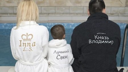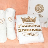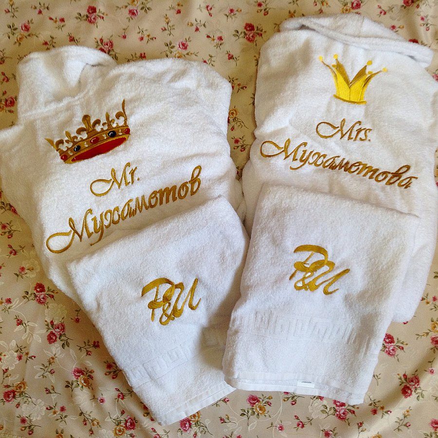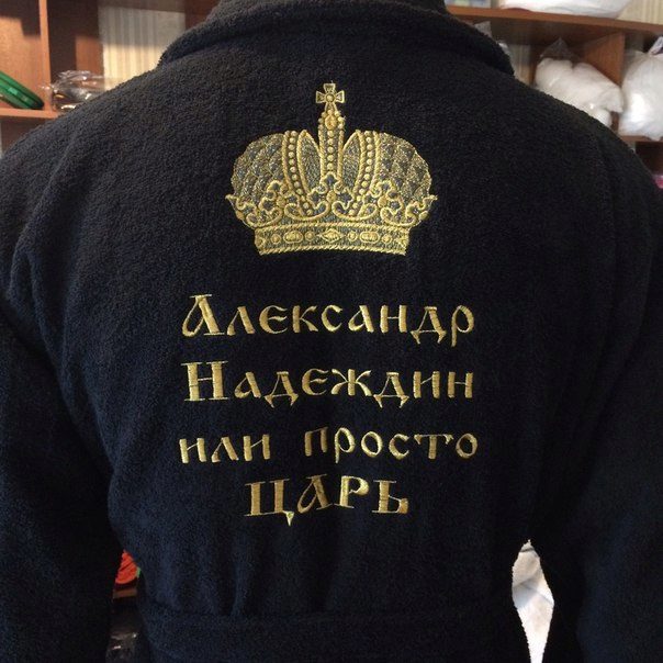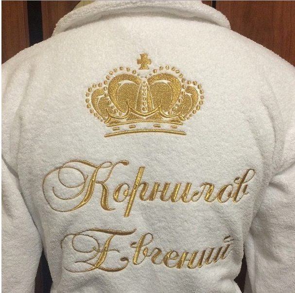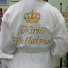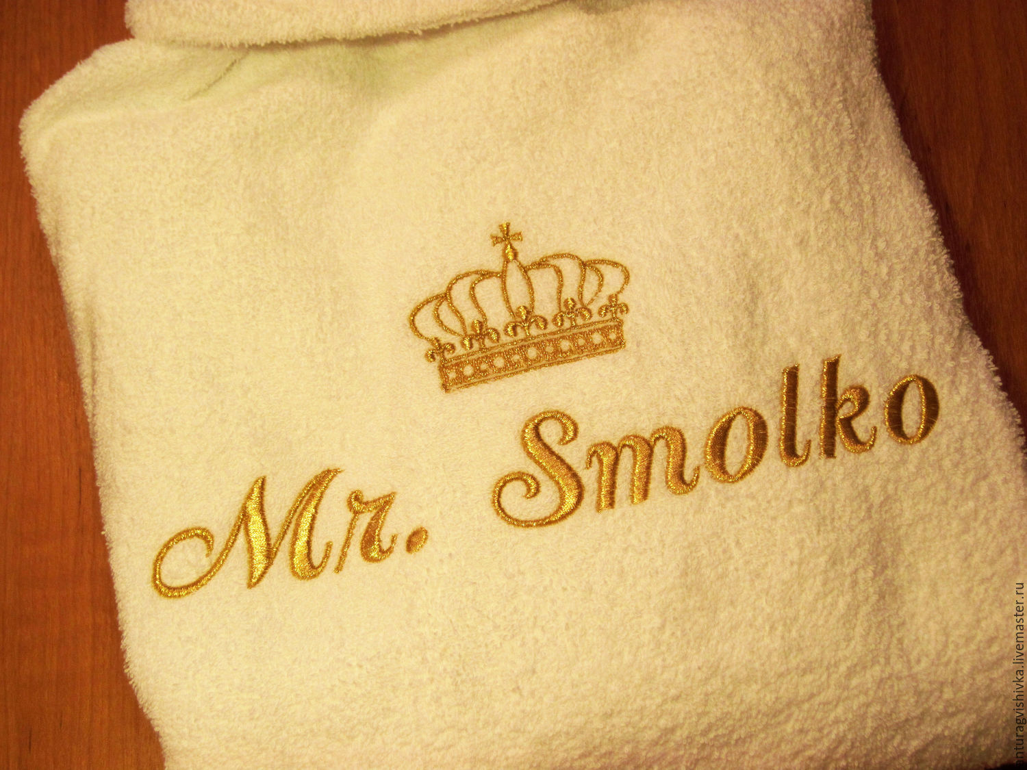 Native dressing gown will be a very original idea for a gift for a birthday, New Year, wedding anniversary or March 8 or February 23. For a specific date, it is necessary to consider the appropriate design of the embroidery and the text of the inscription. For example, as a gift to the couple should consider the option with embroidered rings, date of marriage and the names of the husband and wife. It is logical to accompany the New Year's dressing gowns with text mentioning the outgoing year or a wish for the coming year.
