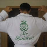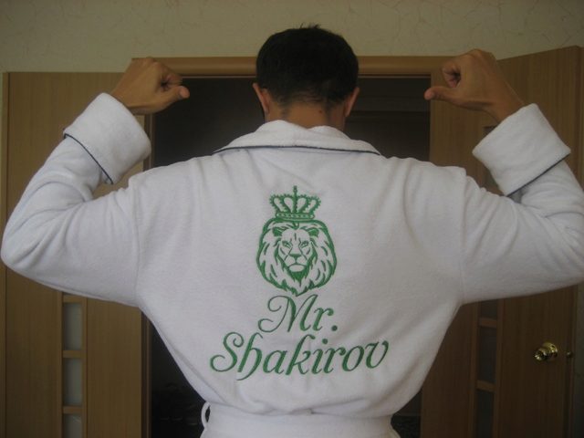 A bathrobe with a name embroidered on its back or the nickname of its owner will be a very thematic gift for an amateur of real men's sports. It is worth remembering footage from the films in which the hero Sylvester Stallone comes to the ring in a comfortable robe with his name on his back. A man in this model will no longer be able to calmly walk past the mirror: the same music will play in his head, and he will also throw up his arms in triumph, feeling himself the main character of a sports blockbuster.