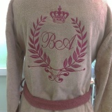 The delicate pink shade of this dressing gown emphasizes the skin color and is elegantly combined with dark long hair. The functional loops into which the belt is threaded will not allow it to fall, even when it is untied, and the diminutive shape of the owner’s name, embroidered on the back, reminds us that there is a piece of the young princess in each woman.