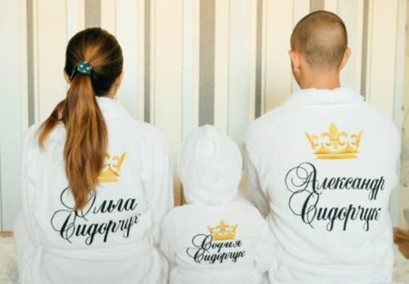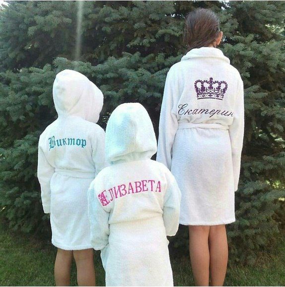 Children often try to copy adults, so why not let them do it by ordering a family set of personalized robes? The pride of a baby who puts on such a robe together with his parents will be noticeable at first glance. In addition, personal gowns for each family member are a great idea for a warm and gentle photo shoot, pictures from which will decorate family albums, house walls and social networking pages for many years.
