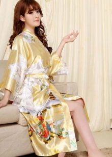 To date, there are models of robes, made of rayon, satin and satin, which significantly reduces the cost of this type of clothing. However, the cost of the fabric itself does not affect the quality of the appearance of the kimono.