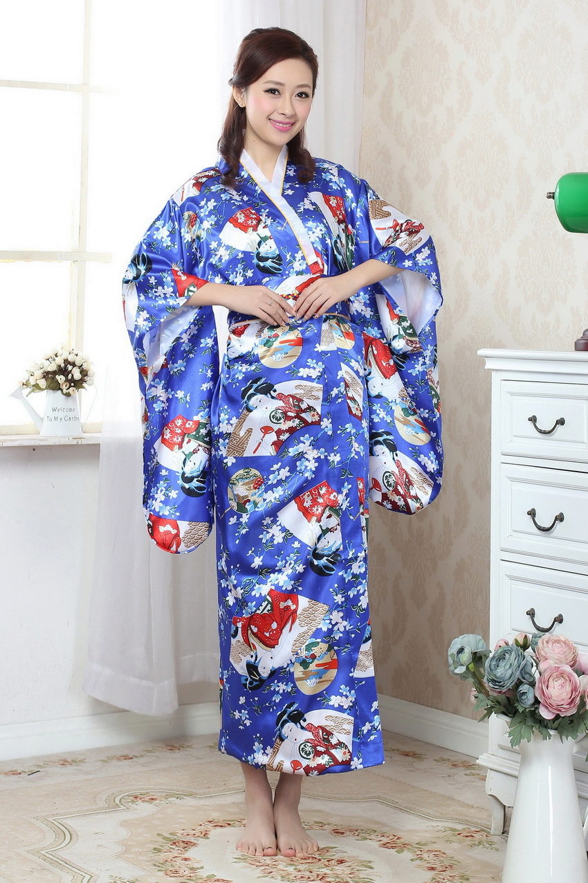 The ancient Japanese kimonos were quite long, ending on the floor, sometimes even had a train (female models). Now stylized kimono robes, nevertheless, somewhat simplified. Therefore, their length depends solely on the designer's imagination and the personal preferences of each individual person.
