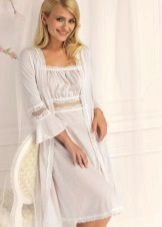 - Set of robe and shirts. Such sets are considered very popular in lingerie stores. Their main advantage lies in the fact that both products are thought out in color and design, and you no longer have to wrestle with what to wear under the robe.