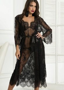 For example, such a robe will not leave indifferent any man. Black color, translucent texture, satin belt - all this makes the image incredibly frank. Under the bottom you can wear a body or a set of linen.