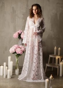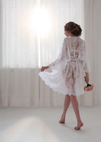- Lace dressing gown for the wedding. The choice of linen for the wedding - one of the important issues that have to decide the bride. You always want such an important event in life to pass perfectly in all aspects, including the first wedding night. Wedding gown of lace will allow you to enjoy the freedom after the dress, while emphasizing the beauty of the body and make it the owner desired in the eyes of her husband. As for color, preference is given to white. It personifies purity, tenderness, lightness and airiness.