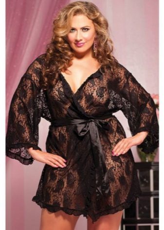 - Bathrobes are large in size. All women want to wear beautiful and fashionable clothes, and ladies with curvaceous here are no exception. Designers know this and create many models for obese women. They can be very different - long in the floor, to the knee, from one lace or combined.