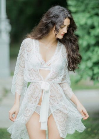 Long lace robes look noble and elegant. In addition, they will suit everyone and decorate any shape. Dressing gowns on the floor are ideal for lovers of bohemian chic. Not for constant daily wear, but for special occasions. Short bathrobes are favorites of young fashionistas. They are always relevant and convenient.