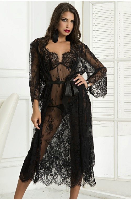 The synonym for this lace robe is frankness itself. It is attractive and leaves no room for fantasy. It can be worn under linen or on naked body.