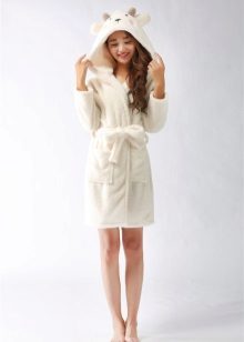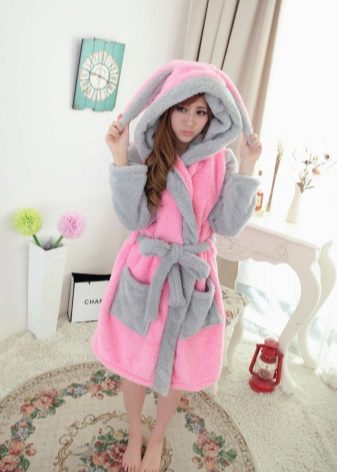 The hood itself can also be different: set-in or single-cut, deep or small, functional or decorative. Among the variety of decor recently, bunny, bear cub, squirrel or any other animal ears, which decorate hoods of bathrobes, are very popular.