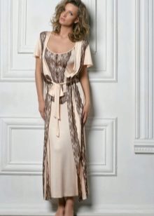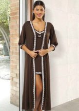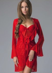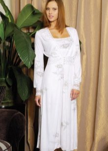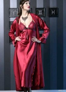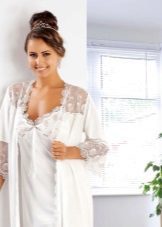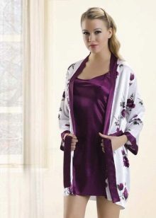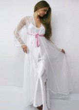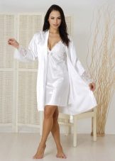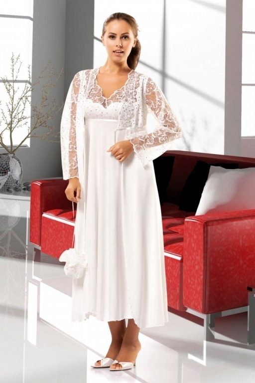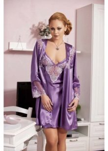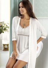 In order to look elegant and feminine in the early morning, it is enough to throw a beautiful, comfortable bathrobe over a nightgown. Clothes made in the same style look very harmonious and elegant. The range of such kits is quite wide and varied. The shirt can have various length, round, V-shaped, square or other neckline, be on the straps or straps, with or without sleeves.