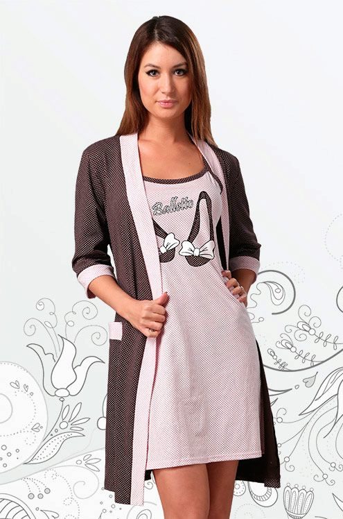 The set consisting of a dressing gown and a nightgown has always been very popular with lovely ladies. I always want to look stylish and fashionable, including in the circle of my family. A set of beautiful home clothes allows you to do it without much difficulty.