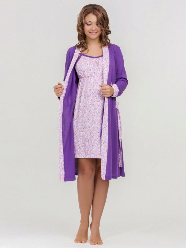 Bathrobe can be zipper, buttons, buttons or zapashnym. The last version of the model is the best, for example, for pregnant women or nursing mothers. This is a separate category of clothing aimed at obtaining maximum comfort for both mom and baby. Such kits are made of natural fabrics, so as not to cause allergic reactions in mother and child. The shirt, as a rule, has a deep cut, which can be buttoned for ease of feeding.