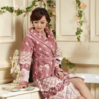 As already mentioned, a variety of materials can be used for sewing quilted robes, each of which has its own characteristics and individual functionality. For example, quilted women's bathrobes, made of velor with a warm lining, are perfect for those who live outside the city in a private house.