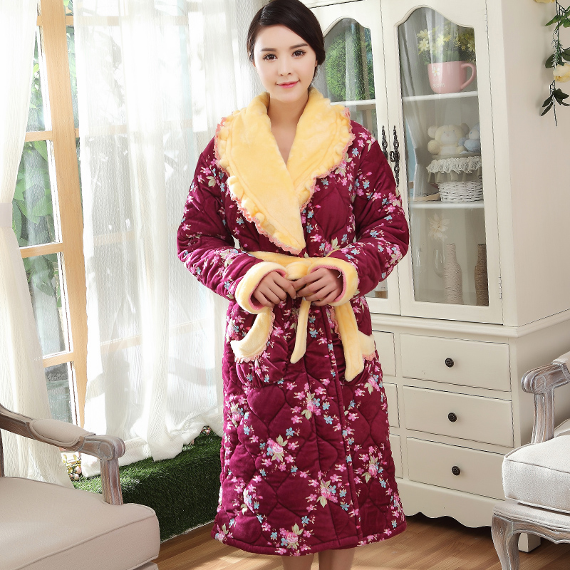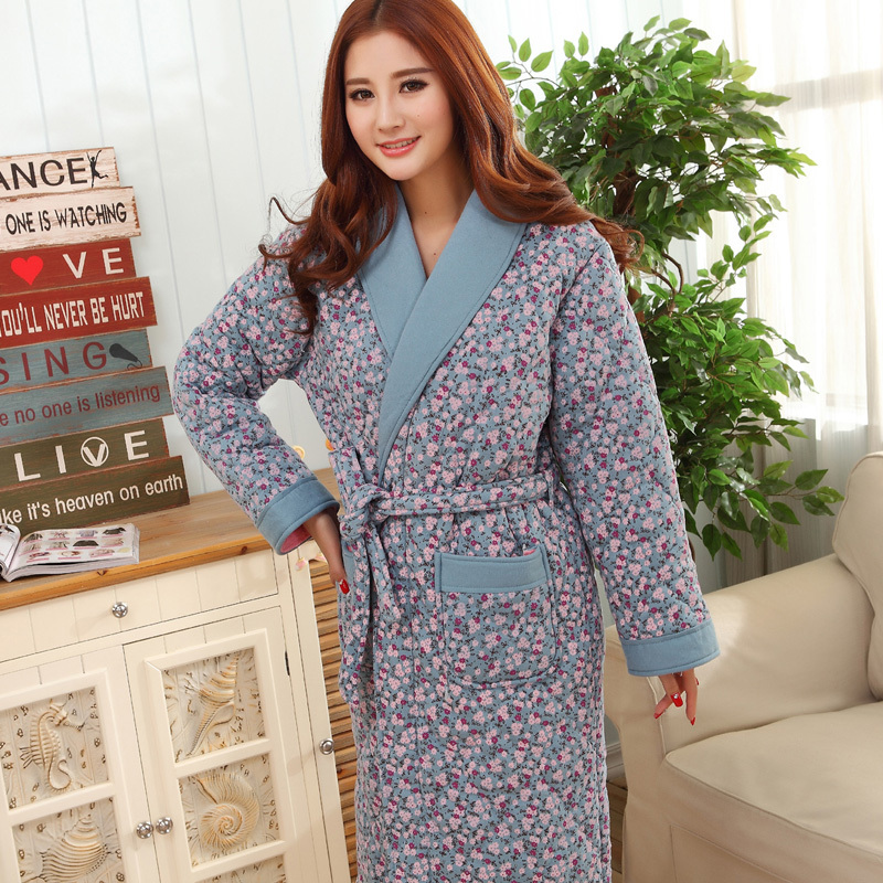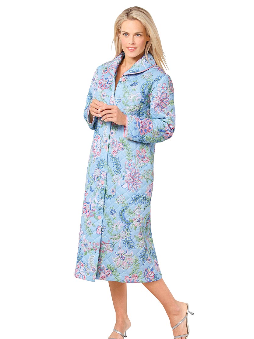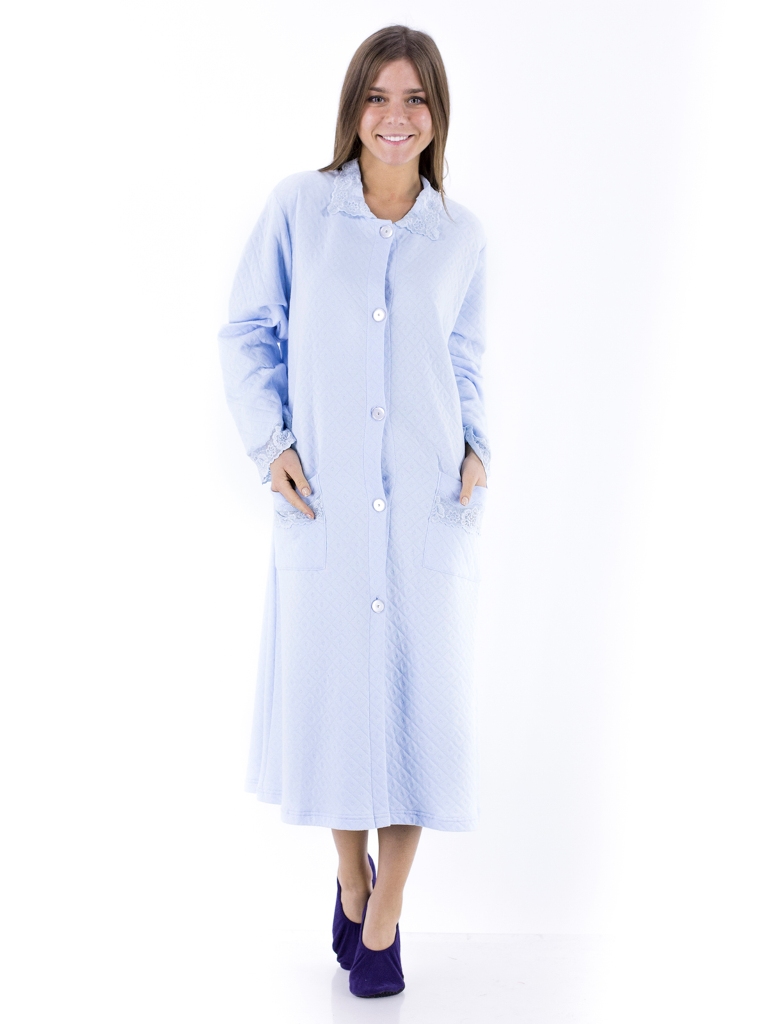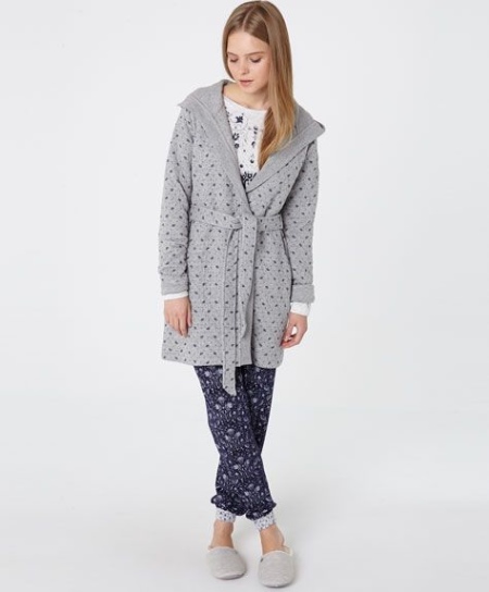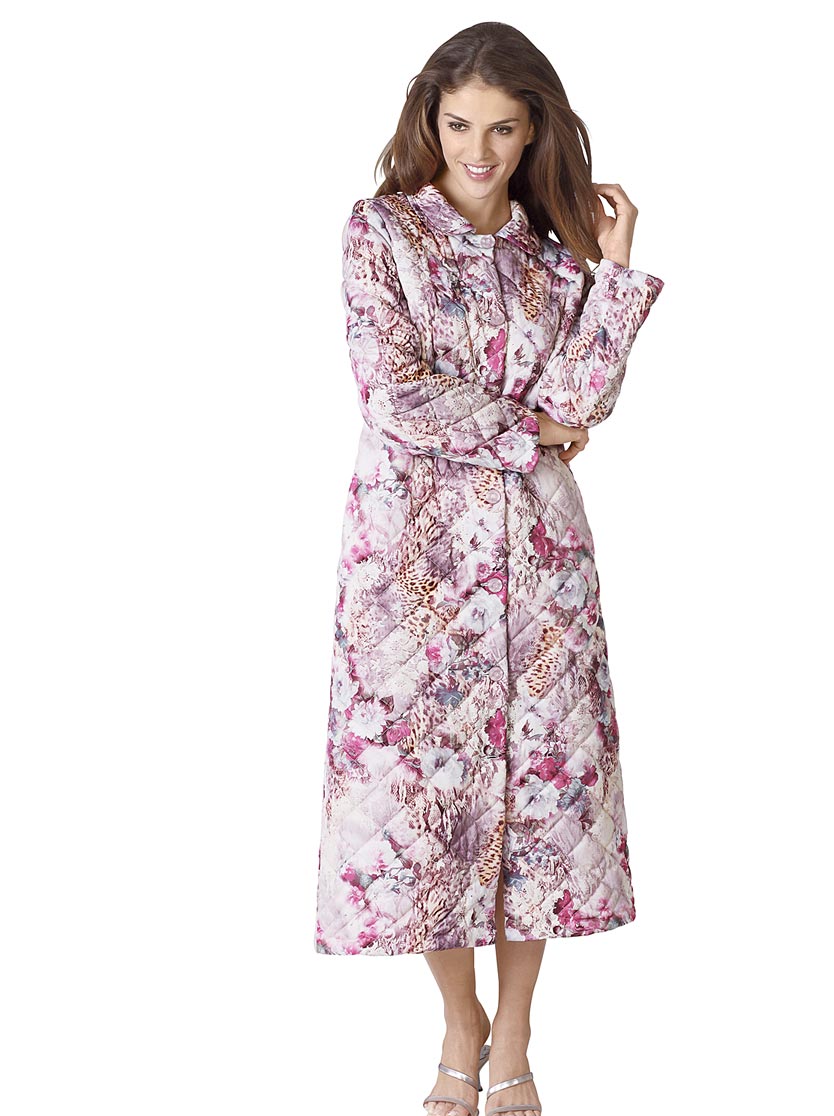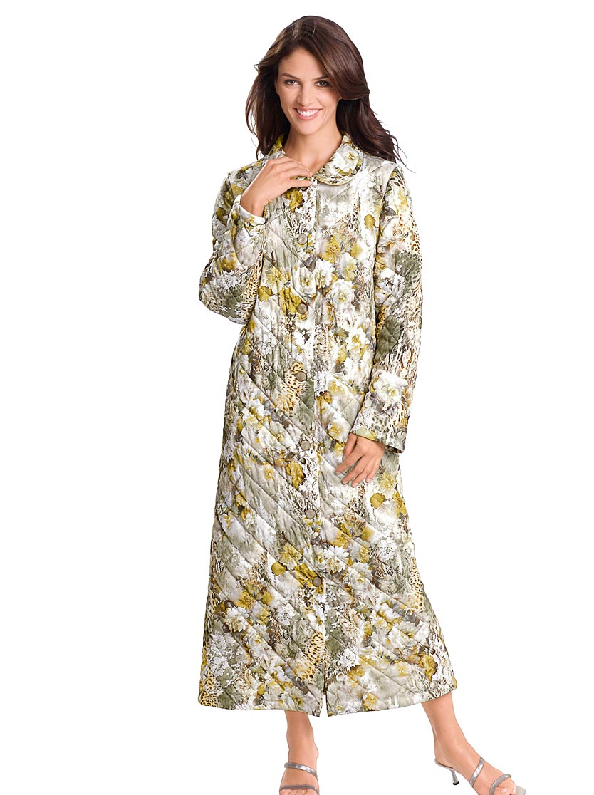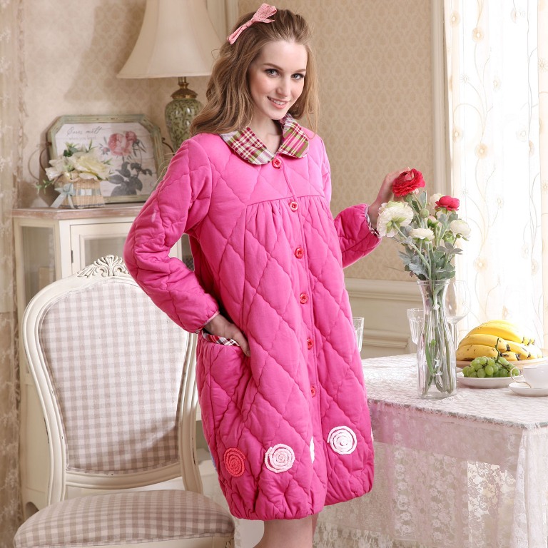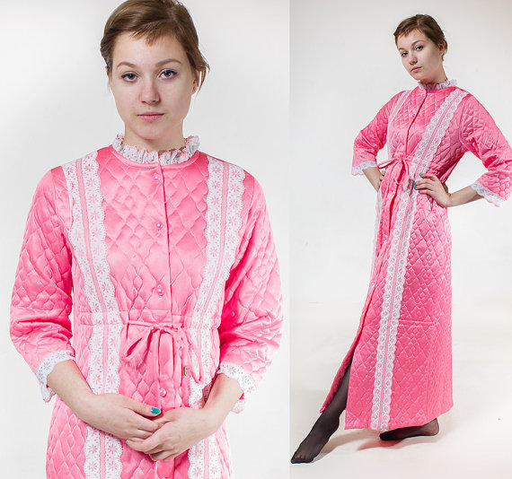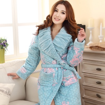 The satin quilted dressing gown which also has quite dense lining beautifully looks. This model is a good option for home wear during the winter cold. Often, these robes are sold complete with pajamas and slippers.