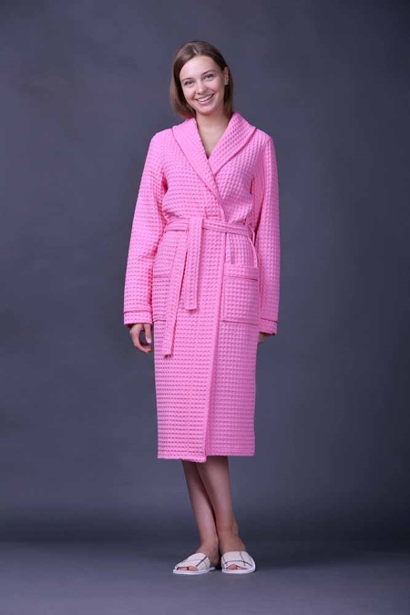 "Waffle" quilted bathrobe is rarely used at home, because there are other for home, more practical and pleasant to the body options. But this model will be an excellent bath option. In the "waffle" dressing gown you can relax after a hot steam room, not freezing at the same time.