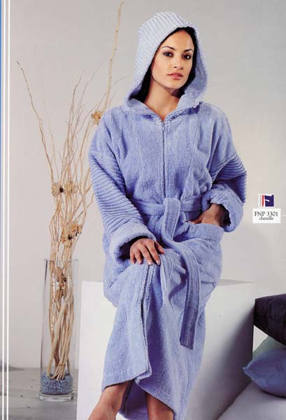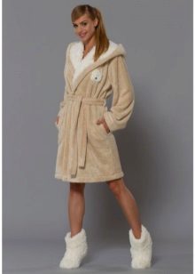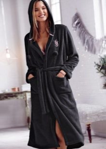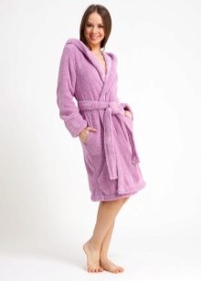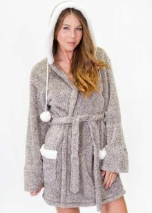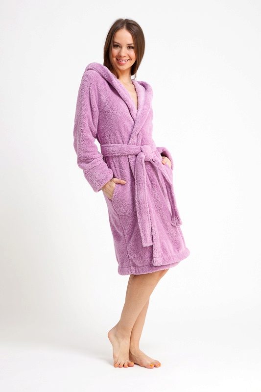 If you are looking for a classic bathrobe, pay attention to warm products with a hood. They are ideal for wrapping in warm cloth after taking a bath or shower. The hood will not allow the head to freeze, if you pre-wash your head and blot your hair with a towel. In it, your curls will be able to dry up until you get down to laying.
