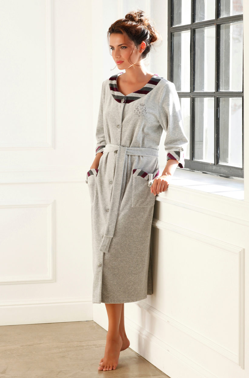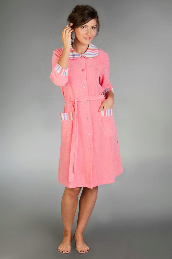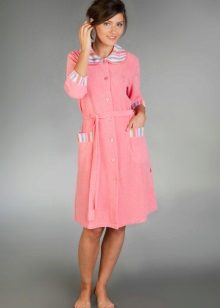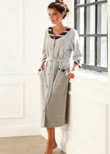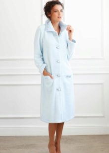 Dressing gown is very comfortable. Buttons are easy to fasten, they are reliable and do not break.Even if a few buttons come off, you can always replace them with new ones. Dressing gowns with buttons can be of any length, style or color. These are usually straight or trapezoidal models that can be complemented with a belt.