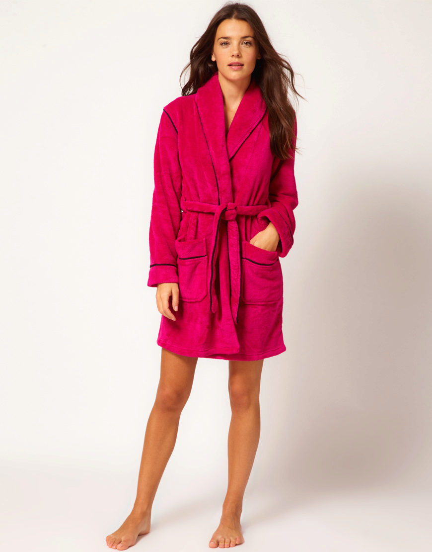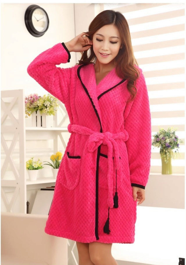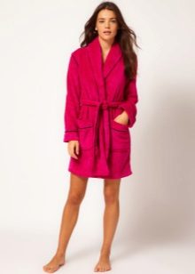 - A warm and soft robe to the knee is perfect for young girls. It will be nice to wrap up after taking a fragrant hot bath. A bright crimson color will lift your spirits, and a black tassel belt will add zest to your home style. After all, a real fashionista in every situation should look perfect.
