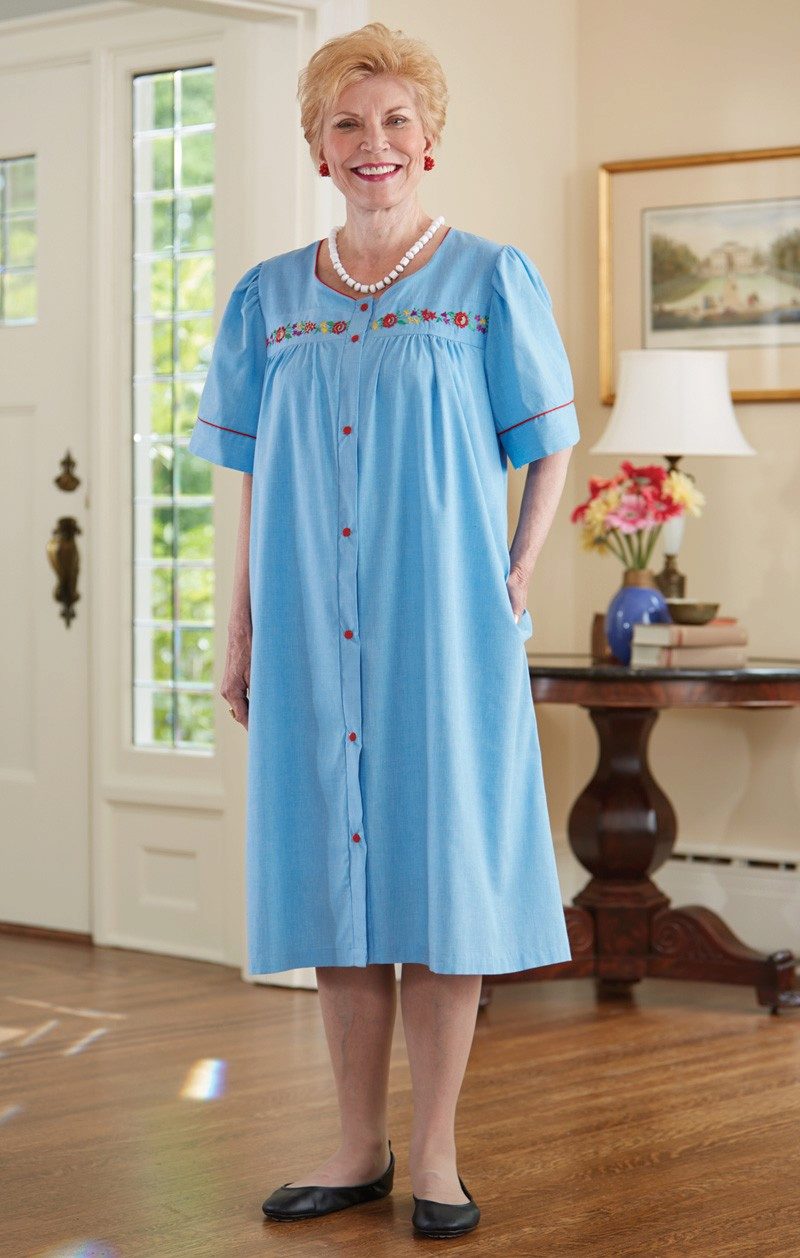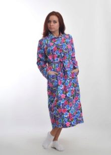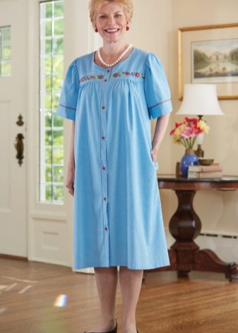 In old age people often freeze, so a robe for a grandmother should be warm and cozy. Usually they like soft flannels with a belt, a model is possible both with buttons and without them. The product must have two large pockets in which an elderly woman can wear a handkerchief, glasses and other necessary items.
