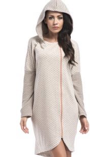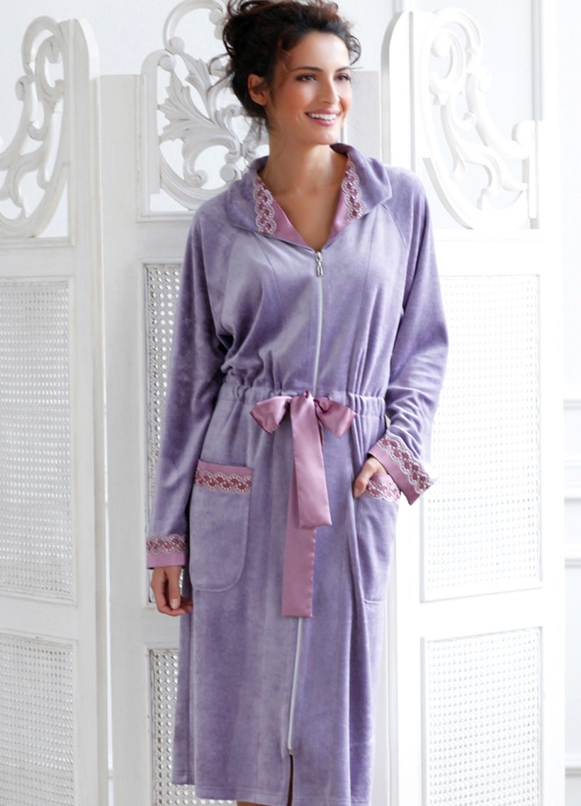 Dressing gowns with zippers are comfortable and practical. They are both bath and for everyday wear. The zipper on will give the floor of the dressing gown to diverge, as is the case with the model with the smell, and it will fasten much faster than a number of buttons. Additionally, a zip robe may have an elastic waistband that will allow to emphasize the waist.