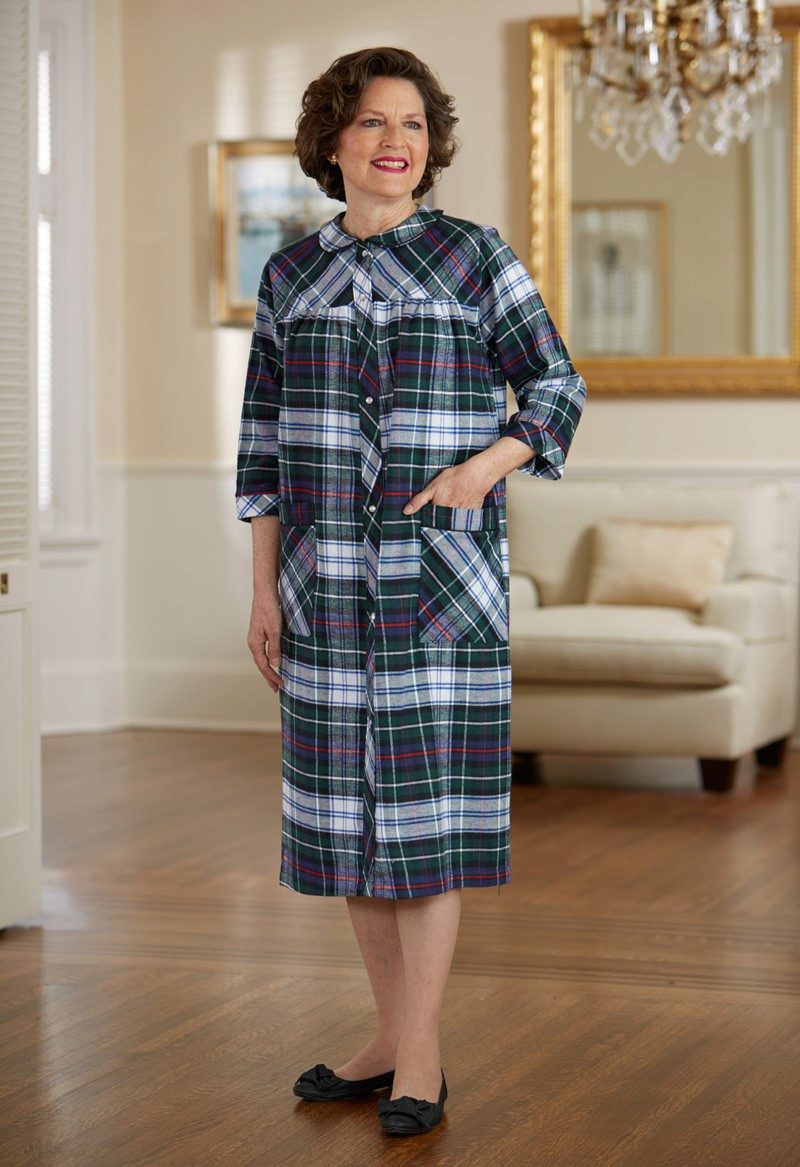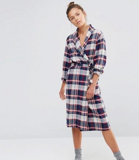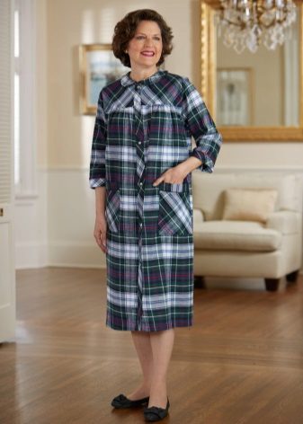 - Checkered flannel robe is ideal for everyday wear. It is not very voluminous, so it does not constrain movements. Due to the muted colors, the dressing gown is not very soiled, it will not need to be washed frequently. The elastic belt will allow you to adjust the size of your robe, if you are a little better or lose weight. Very comfortably!