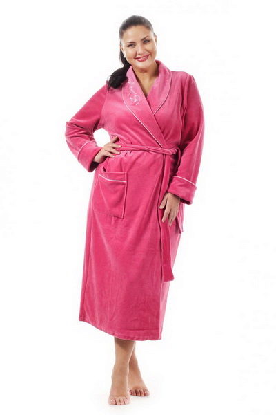 But the owners of magnificent forms can be difficult to choose a suitable robe, since many manufacturers offer them shapeless robes that disfigure the figure. When buying a bathrobe, give preference to models with a smell, a free cut or with a bat sleeve. They perfectly hide all the flaws of the figure and visually make you slimmer.