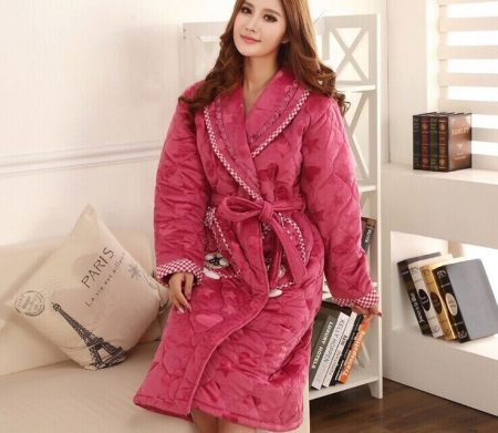 Quilted bathrobes on the padding polyester are great for everyday wear. They emphasize the advantages of the figure and hide the flaws, warm them well during the cold season. Bathrobe on sintepon light, soft and comfortable. The pattern of quilted linen can be varied, it plays a kind of decorative role and makes the robe even more attractive in appearance.