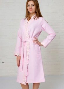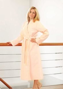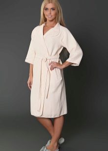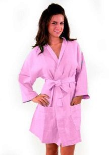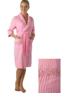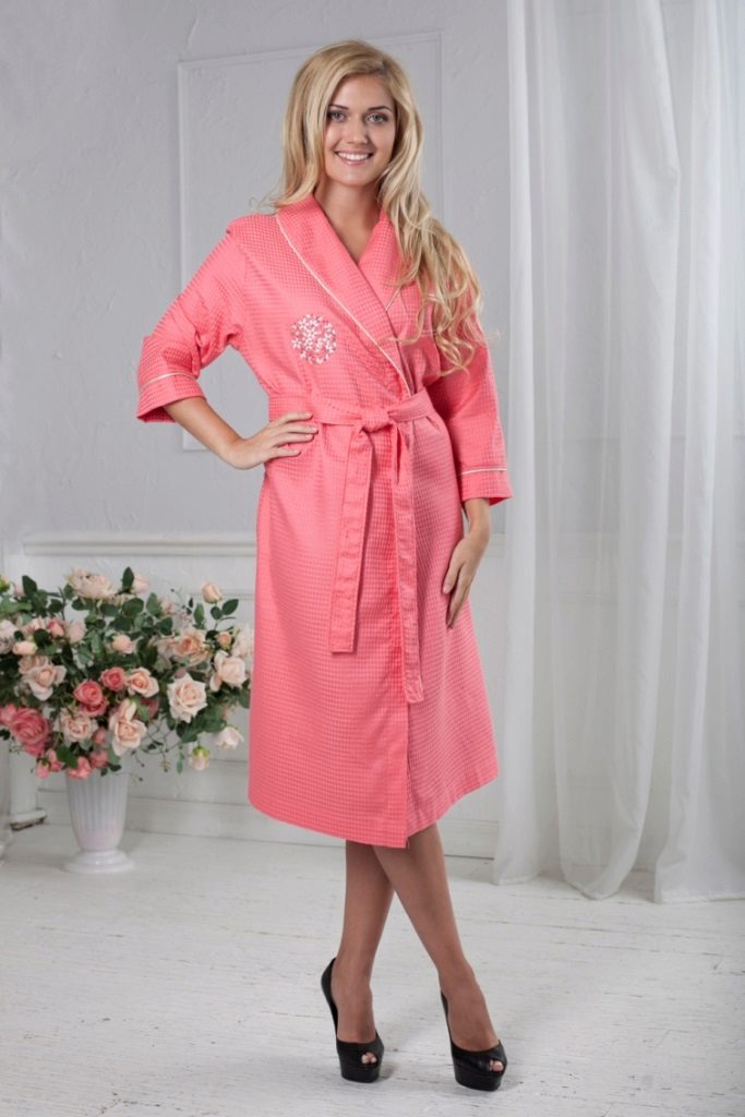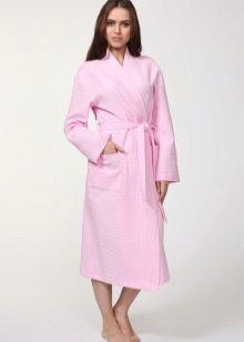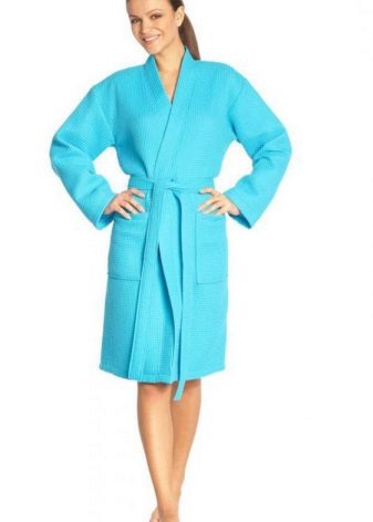 The cut of the bathrobe may be different. Someone will like the stylization of neat and concise models of classic European costumes for the home. Others will appreciate the waffle robe made in the style of Japanese kimono. The choice of the color of the robe also depends solely on the subjective preferences of the person. It can be both modest monophonic models, and decorated with varying degrees of complexity with embroidery or bright prints. The main thing is that the coloring should not deprive the waffle fabric of all its competitive advantages, which were mentioned earlier.