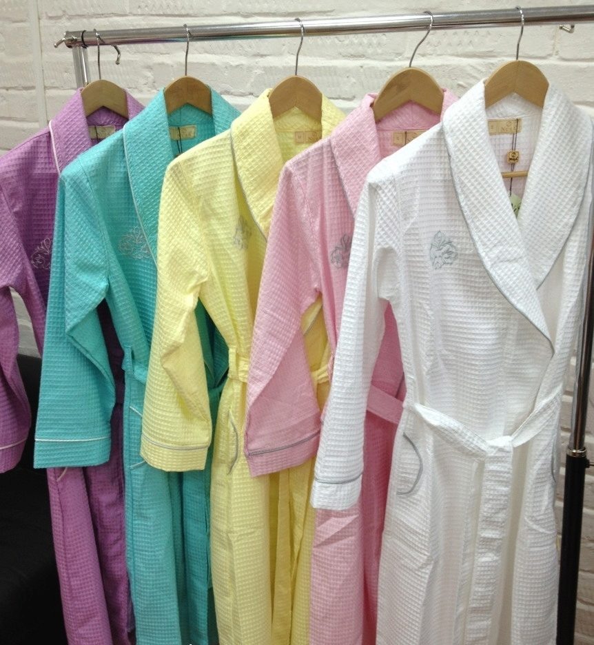 Dressing gowns from far abroad mainly consist of Turkish goods. Dozens of sewing factories from Turkey offer a variety of models of waffle coats for every taste.