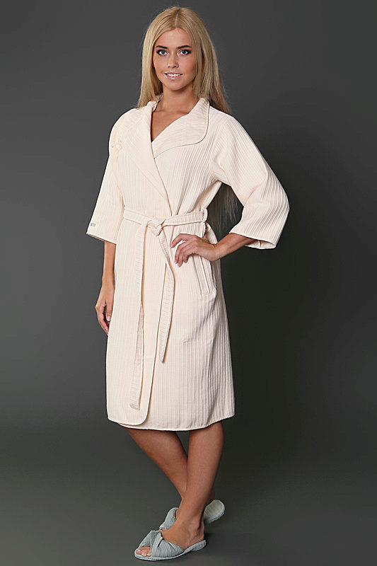 Due to its special structure, lightweight waffle fabric absorbs moisture perfectly. In fact, this material can be considered an ideal version of the fabric, combining the advantages of both mahra and silk. From the first "wafer" took hygroscopicity, and from the second - weightless lightness. At the same time, the deep relief and volume of wafer fabric does not allow it to adhere to the body, which positively affects the sensations when wearing such a robe, this feature also allows things sewn from this material to dry faster.