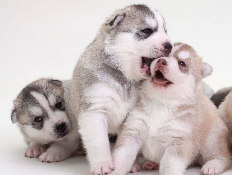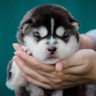 After birth, huskies are rapidly gaining weight, as they sleep and eat a lot. At birth, they weigh quite a bit - about 500 grams. When they reach the age of one month, body weight increases about 6 times. And the puppy weighs about 2750-3000 grams. To understand whether a baby is developing normally, it is necessary to weigh a puppy once a week to six months. So you can check whether you feed him correctly. Overfeeding and underfeeding equally adversely affect the growth and development of the dog.