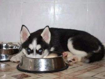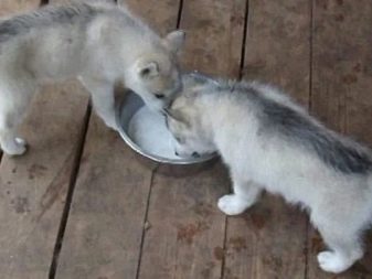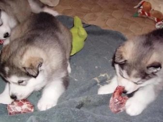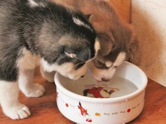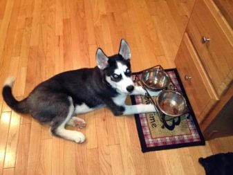 If the owner stopped at the finished feed, then you can only use special products for two-month-old animals. At first, dry granules are allowed to soak with water. Start with a small amount, increasing portions gradually. For huskies, it is better to choose premium foods that are of high quality and already contain all the necessary ingredients and vitamins.