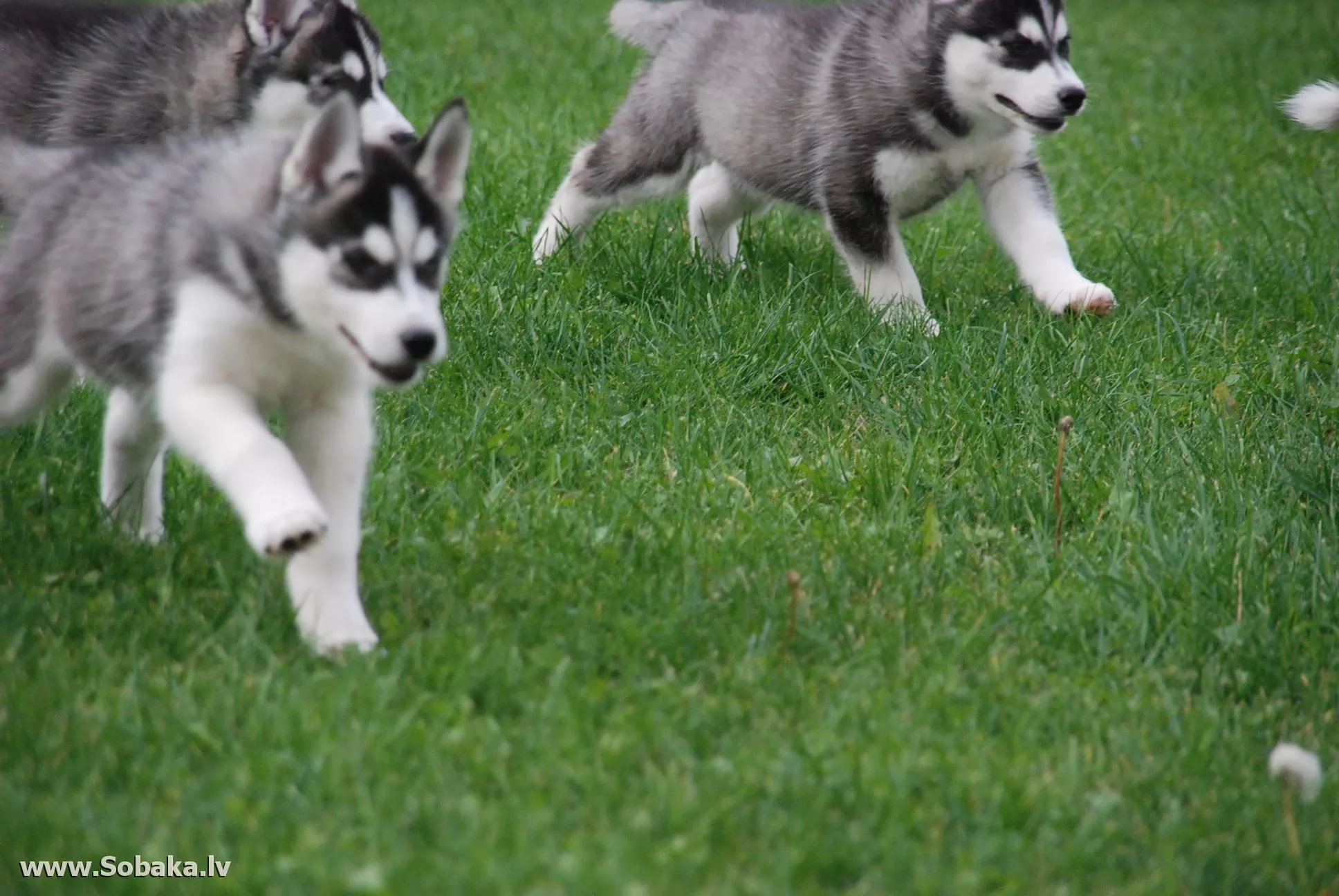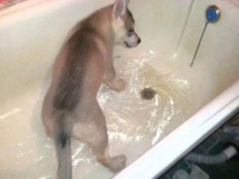 Huskies do not require special care in the house, but you need to prepare for the fact that you will have to walk and run a lot with the animals, at least 3-4 hours a day. At first, the puppy is walking with a leash, but fixing it to the harness, so as not to damage the animal's neck with a collar. In the future, the puppy will need free range and active games under the control of the owner.